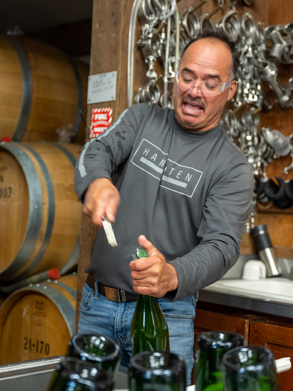 It wasn't until 1990 that we had enough experience—and courage—to attempt to produce a sparkling wine from Gewürztraminer grapes. When picked early, with its light pink skin and tropical-floral nuances, this variety provides natural acidity, structure and fruit to the base wine. Bottled in June of 2019 the cuvée rested sur latte for six years until disgorging in June 2025. Boasting floral, citrus and toasty flavors, it's a bright and creamy holiday treat