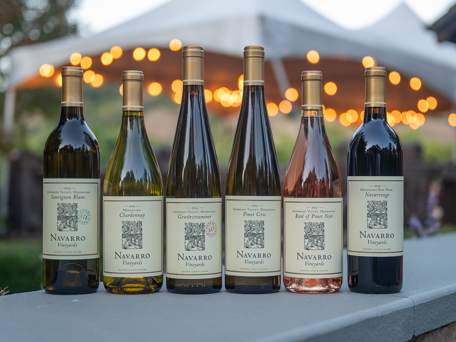 2023 Chardonnay, Mendocino 2023 Gewürztraminer, Estate Bottled (Dry) 2023 Pinot Gris, Anderson Valley 2024 Sauvignon Blanc, Cuvée 128 2023 Rosé of Pinot Noir, Anderson Valley 2023 Navarrouge, Mendocino Red Wine